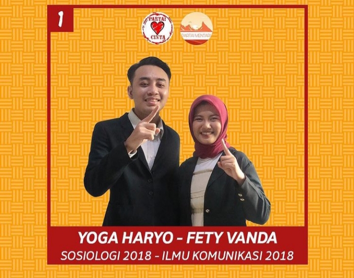 Dari ketiga partai yang lolos hanya memunculkan satu pasangan calon (paslon) Ketua-Wakil Ketua BEM FISIP 2021, yaitu Yoga Haryo dan Fety Vanda. Dengan begitu, paslon yang diusung koalisi Partai Mentari dan Partai Cinta tersebut menjadi calon tunggal melawan kotak kosong.