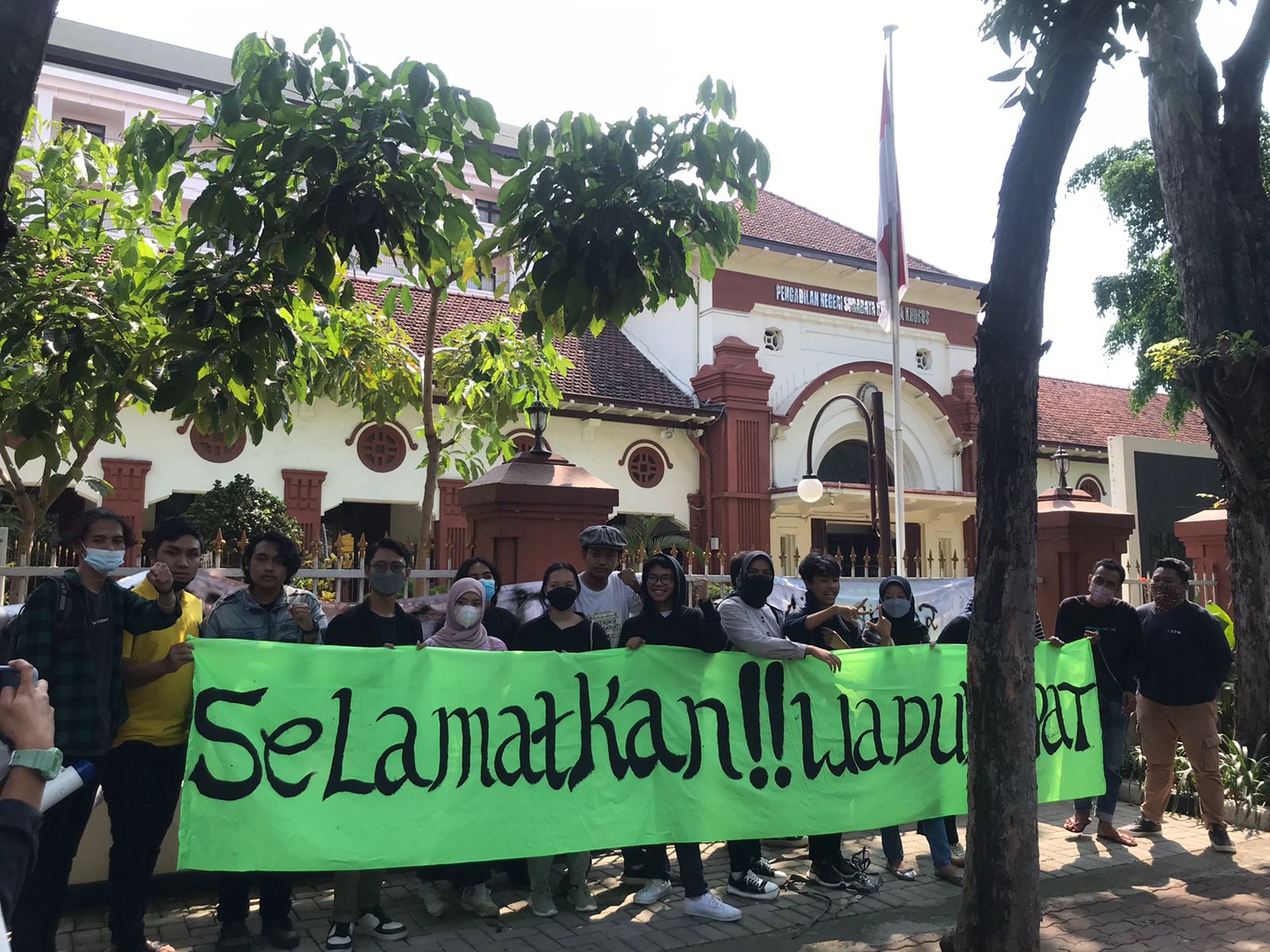 Massa aksi dari Aliansi Selamatkan Waduk Sepat (Selawase) memadati Pengadilan Negeri Surabaya pada Senin (30/05). Aksi digelar untuk menuntut keadilan atas perampasan ruang hidup masyarakat Kota Surabaya, Waduk Sepat. Dian Purnomo, salah satu warga sekitar Waduk Sepat Surabaya menerangkan bahwa aksi hari ini sebagai peringatan kepada pihak pemerintah.