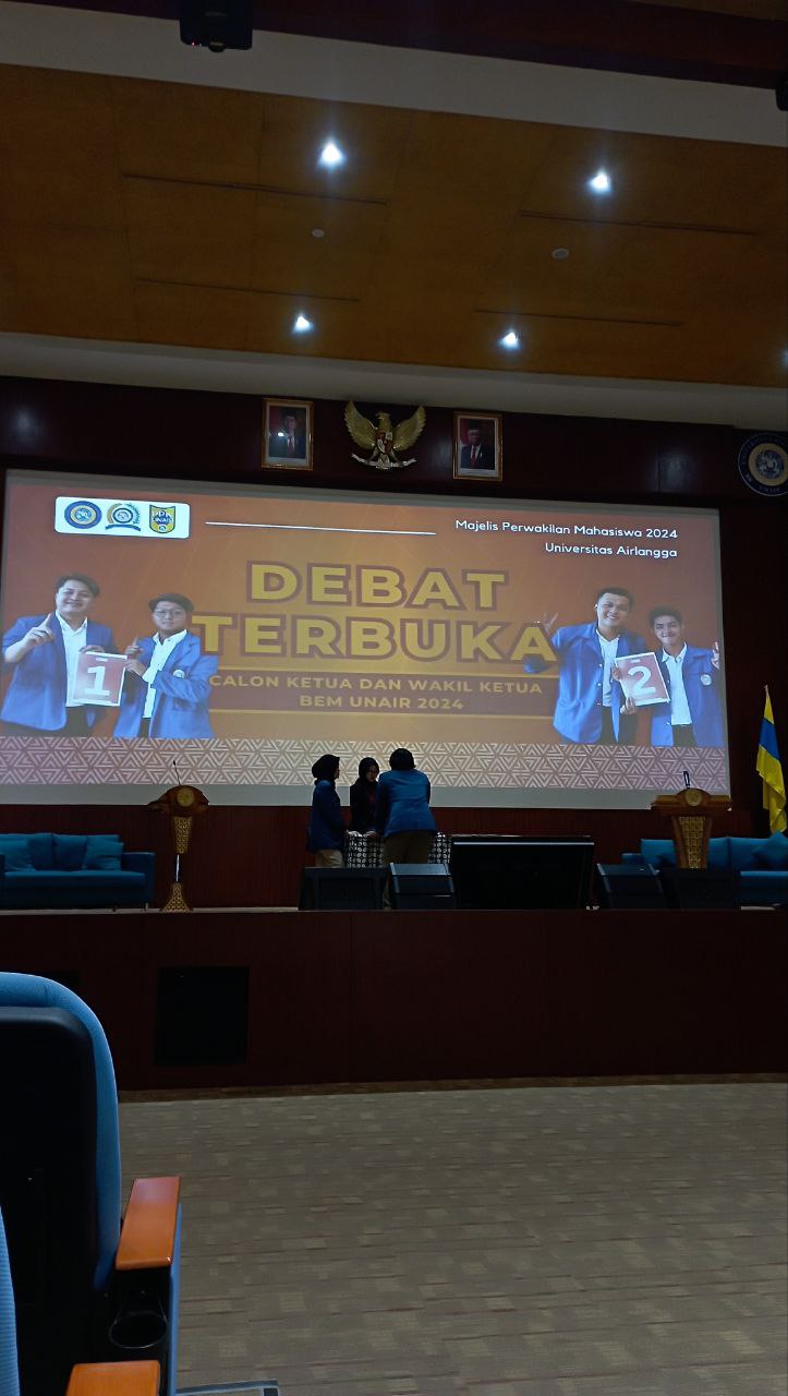 Kamis (7/3) tepat pukul 14.26 WIB, Uji Publik dan Debat Terbuka Calon Presiden dan Wakil Presiden 2024 dibuka oleh Moderator. Acara yang sebelumnya dijadwalkan dimulai pada pukul 14.00 WIB molor hingga hampir setengah jam. Bertempat di Aula Ternate, ASEEC Tower, Kampus B, Universitas Airlangga, kegiatan ini dihadiri oleh beberapa petinggi UNAIR seperti wakil rektor bidang akademik, kemahasiswaan dan alumni, direktur kemahasiswaan, dan tiga panelis. Peserta yang hadir pun juga cukup ramai. Uji Publik dan Debat Terbuka ini menjadi rangkaian terakhir ajang kampanye bagi kedua paslon yang diselenggarakan oleh PPK BEM Universitas Airlangga 2024.