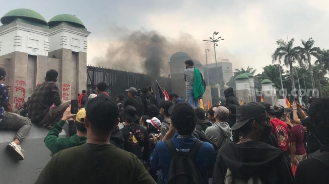 Sumber Gambar: Suara.com/ Nur Saylil Inayah (Massa mahasiswa melakukan demonstrasi di depan Gedung DPR/MPR RI di Senayan, Jakarta Pusat.)